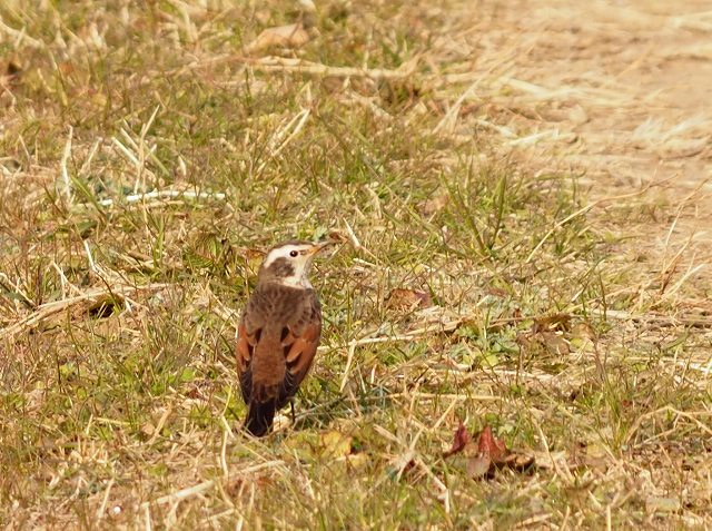 この後、用水路沿いに手賀沼まで歩く途中で、この間の利根運河では少なくなったと噂されていたツグミに遭遇しました。ツグミにしてはなんか頭が白いのですが、、動きはツグミでしたのでツグミなのでしょう。