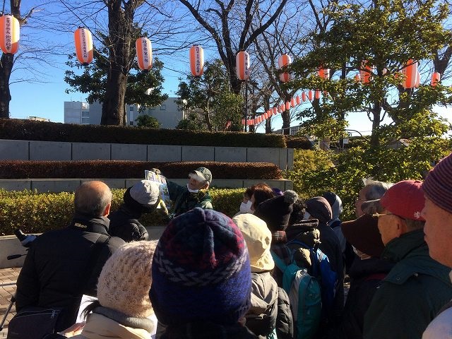 いつものように東京理科大の入り口でブリーフィングしてから出発します。東葛人さんとも無事合流し、利根運河のあたりはポカポカしているので野鳥たちもいっぱい居るかな?と期待が高まります。