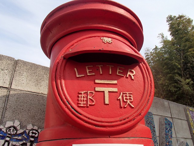 そして次のポストスポットへ!赤いポストは見たことありますね。でも「POST」じゃなくて「LETTER」って書いてあるものははじめて見ました。説明版によると戦前のポストで「御紋」があったり「LETTER」って書いてあったりする日本に3つしかない珍しいポストらしいです。このPOSTも投函できるようですね。