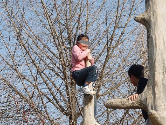 このオブジェは土手に何本か立っている木のようなもので子供達でも登れるようになってます。