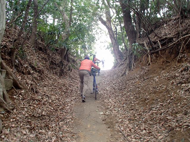 めずらしく激坂を登ります。あまりの激坂に押しが入りました。鎌ヶ谷の谷津は深いですねーーー。