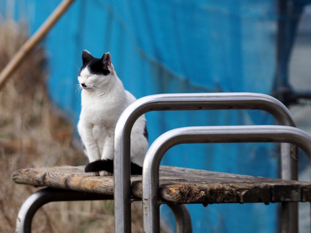 寒いからいないかな?と思いましたが、地域ネコたちはベンチでくつろいでます。寒いからじっとしてるだけ??