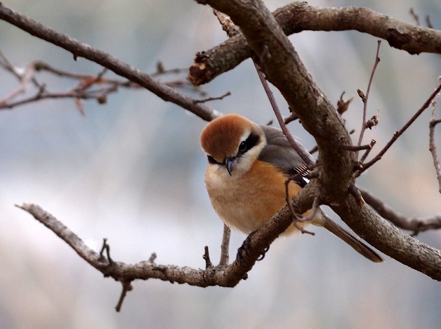 寒いのでモズもふっくらと膨らんで動きません。(そんなににらまなくてもいいやん)