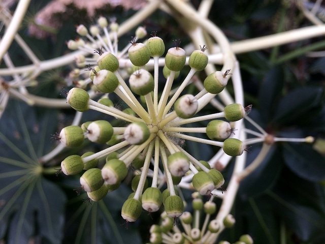 みなさん、これ知ってますか?ヤツデの実なのですが、関西では小学校の校門に竹でつくった豆鉄砲を売るおじさんがきて、おまけで玉(ヤツデの実)を新聞紙に来るんでくれました。確か300円くらいしたかな?すっごく懐かしい。