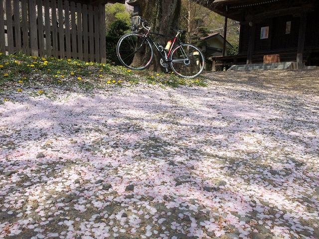 こんなに桜が散ってピンクの床ができてます。福寿院はりっぱな茅葺なんですね!!初めて気が付きました(笑)帰らなければいけない時間まで余裕がなかったので、大急ぎで今井の桜の花絨毯スポットまで行くと、、、全然絨毯じゃないな〜