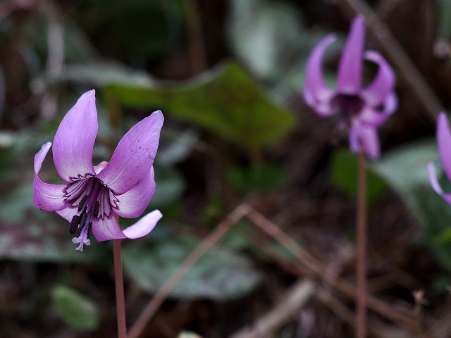 今井の桜には10時くらいに到着したのですが、風が吹くとこんな感じでハラハラというか桜吹雪になってます。しばらくじっと待ってみたのですが川面がピンク一色になる様子はなかったので、カタクリの花を見に行きます。先週偵察しておいたので咲いているのは確実ですがタイミングはどうでしょうか?