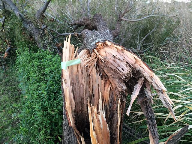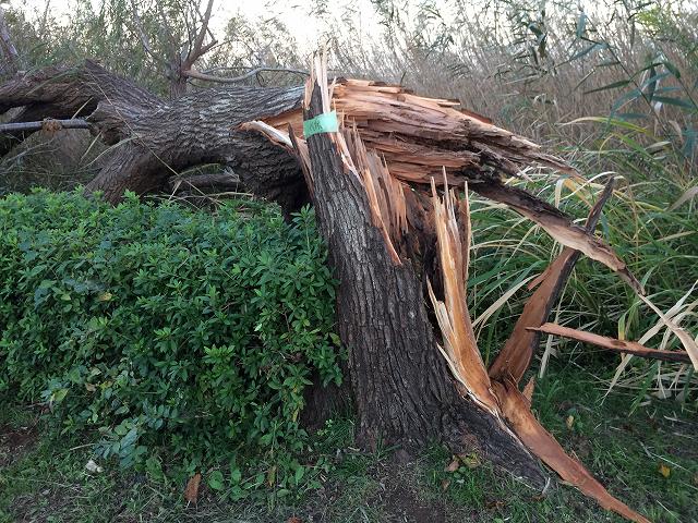 あとは北岸の遊歩道をゆっくりと帰ったのですがが、途中で悲しい光景が、、台風24号の被害で、桜の木をはじめ、いろんな木があちこちで倒れてます。乾いた木が折れるのはわかるんだけど、元気そうな木が折れてしまってますね。一部は根っこから倒れてましたね。ちょっと今井の桜が心配になってきましたね、、