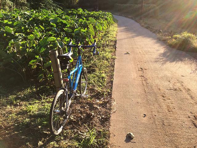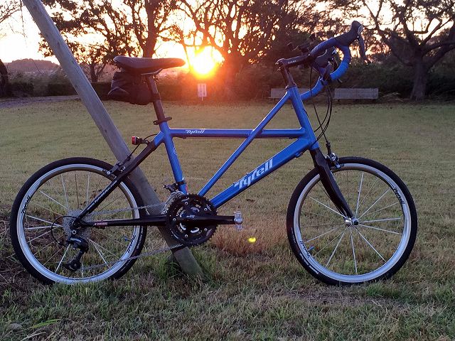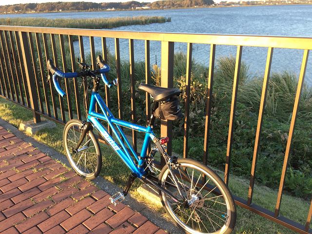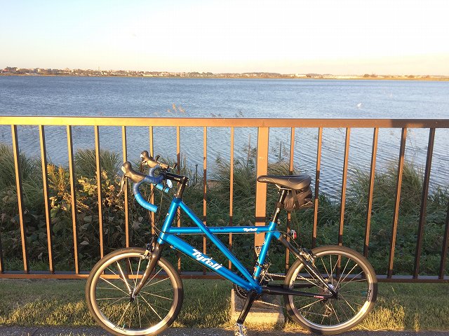 手賀沼CRの南岸にでると予想外の向かい風!直進性が良いタイレルでも向かい風には負けますね〜。かなりつらい向かい風でしたが、途中で追い風になったらめちゃくちゃ快適!北岸にくると既に夕日が沈みそうになっていたので、夕日と記念撮影。