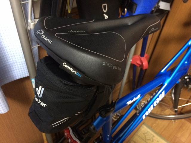 追加したパーツはライトホルダーとスマホホルダーとサドルバックだけです。