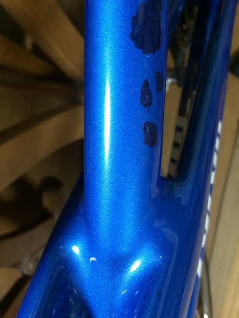 タイレルの塗装はカドワキコーティングのパウダーコーティングで、綺麗ですね〜。でもいっぱい乗っていると傷はつき物です。ちょっとタッチペンしておいたのですが、クリスピ用のタッチペン(といってもカー用品の似た色)を使ったら、ちょっと色があっていないのでムラムラに、、、しまった。