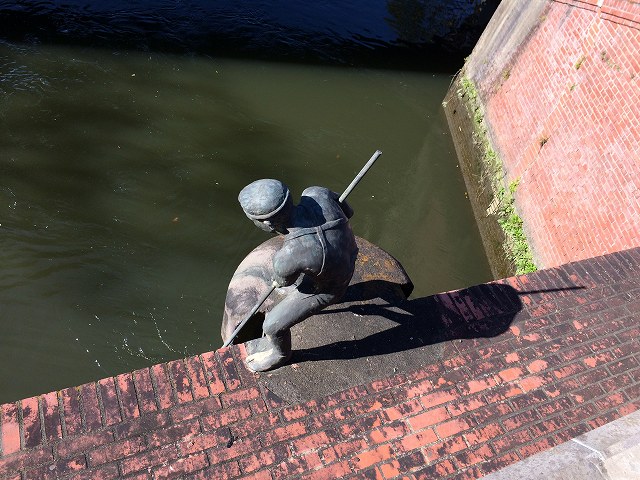 冒頭の写真は「林や」さんの近くの閘門橋で撮ったのですが、欄干の間から頭が、、、この人はなにしてるんでしょうね?掃除??(笑)