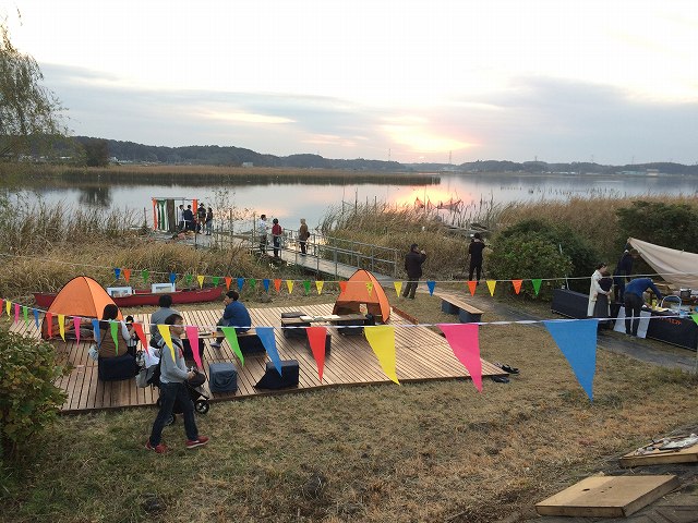手賀沼フィッシングセンター前に人だかりが、、乾杯してました。