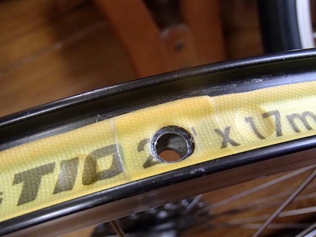 という事でタイヤ交換しておきました。実はクリスピに最初についていたタイヤを保管しておいたので、それに交換しましょう。リムの掃除をする際に、リムテープの状態を確認しましたが、全然綺麗ですね。タイオガのリムテープは高品質なのでしょうか?まったく傷んでいる感じはありませんでした。