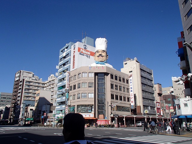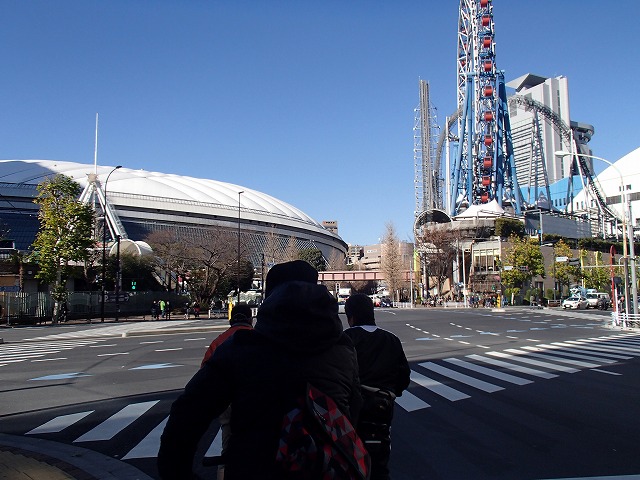 道中はなんだかわからないビルや東京ドームを通って目的地に向かいますが、なんでしょうね?このおじさん(笑)