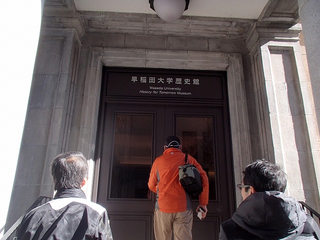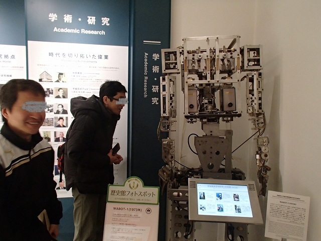 ランチの後はキャンパスをうろうろ歩きます。最近できた「早稲田大学歴史館」では歴代の総長が紹介されていたり、グッズが売っていたりして面白いですね。ほぼ、撮影禁止なのですが、WABOTは撮影できました。Spiritさんが大喜び!この建物は東葛人さんの部室があったとの事で覗き込む怪しい人になってました(笑)