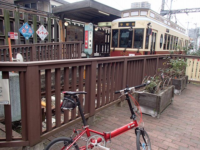 七福神をめぐっている間に体が冷えたので、三ノ輪商店街でランチすることに!三ノ輪商店街は都電荒川線の始発駅なので、こんな感じで単線が折り返すポイントになっています。カワイイ電車が来て折り返していきました。三ノ輪商店街の入り口にも都電の電車がかかれています。