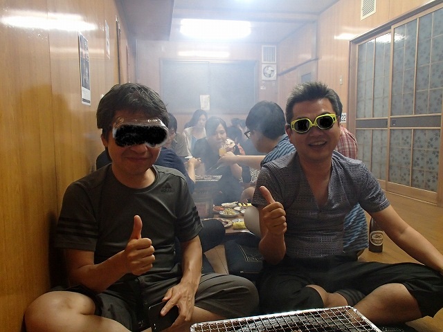 僕達の後からもお客さんがどんどん入ってきて、、、焼肉開始しはじめると、、煙がすご過ぎて涙目になるので水中眼鏡やゴーグルをしないと耐えられません。もう、新しい種類のアトラクションですね!1年分の焼肉を食べて、いっぱい飲んだのですが、、煙もいっぱい吸い込みました。体も頭も服も焼肉の匂いが染み付いていて、電車に乗るのが怖い(笑)