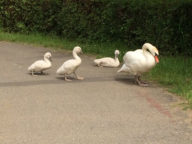 帰りはちょっと違うルートを探して走ったのですが、案外いいルートを見つけました。名都仮の交差点をまっすぐ行った弧線橋は自転車も走っていいんですね!(行きは違うルートでしたが、、)手賀沼は子育てシーズン真っ盛り!白鳥の親子の食事風景が見られますね〜