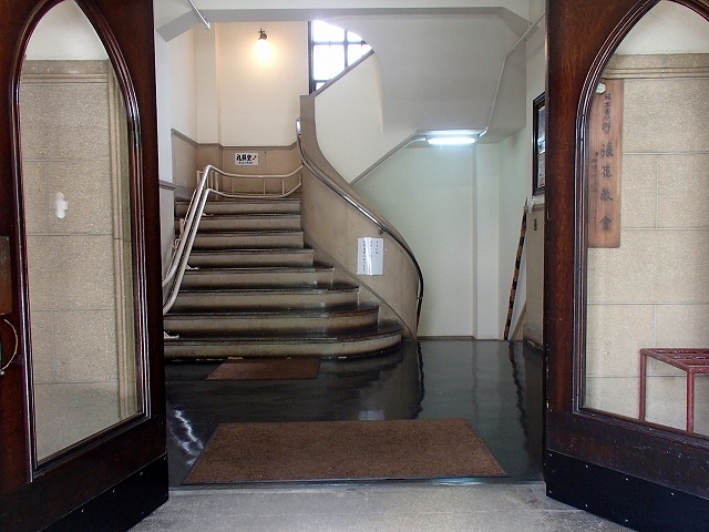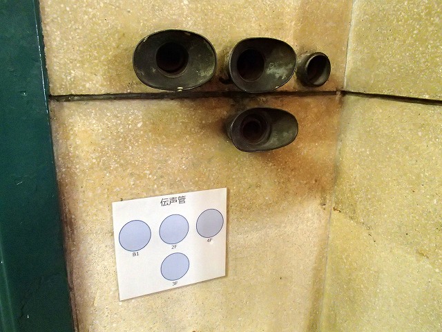 ここは「芝川ビル」で、雑居ビルとしてお店がいっぱい入っているので、自由に入って中も見ることができまます。連絡用のパイプがあったり、雨戸を停める銅の金具があったりして、見たことがないものがいっぱいありました。