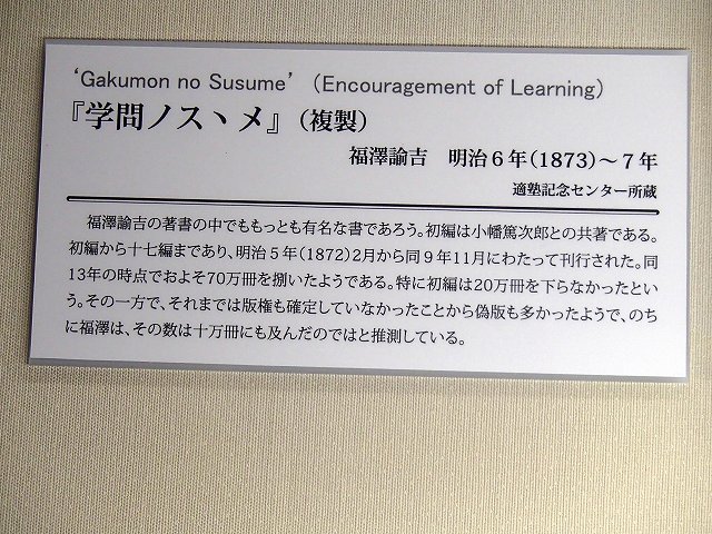 中にはいろんな資料が展示されていますが、「学問のすすめ」は初めて見ました。「ちっちゃ!」