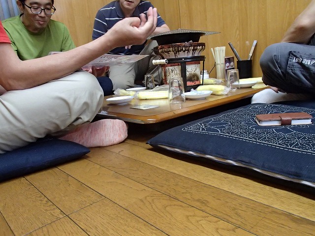 ぺったんこの机(コタツが足を折りたたんだ状態)に七輪がセッティングされているので、不思議な高さで焼肉を開始!さすが専門店のお肉は美味しい!センマイ刺し、タン塩、骨付きカルビ、ハラミ、シマチョウ、アカ(テッチャン)、ロース、ミノ、ツラミとめっちゃ美味しい焼肉を堪能しました。(お肉の画像撮ってなかった、、、)