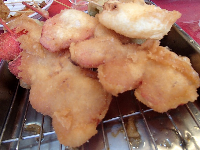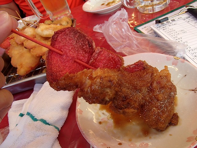 紅しょうがの串カツが美味しいんですよね〜。軽くて美味しいのでビールがどんどん進みます。メニュー見ながら片っ端から注文し、気がついたらみんなで50本くらい食べてました。