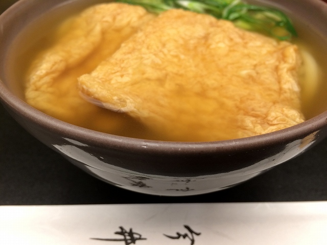入ったのは「今井」さん。ごっちゃごちゃのみなみの街中にある落ち着いた老舗のうどん屋さんです。ちょっと人酔いしそうだったのでほっと一息できますね。食べたのはもちろん「きつねうどん」です。