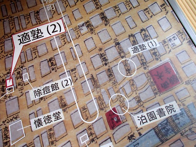 大阪の川はこんな感じで水が近いです。橋を渡った先には「適塾」があるとの事ですが、僕は「適塾」って何?と知らなかったのですが、、、蘭学を学ぶ場所で、大阪大学の前身なんですね〜。