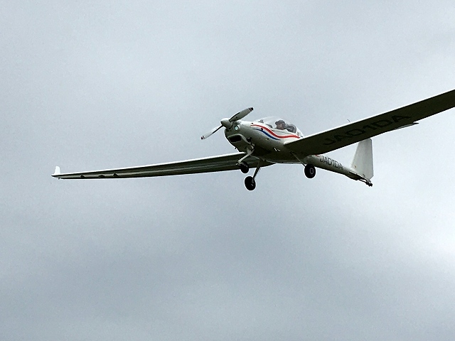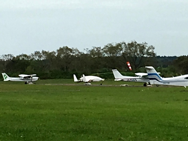 ふと滑走路を見ると、プッシャー型の機体がいました。この時飛んでいた機体に隠れてたみたいです。飛ぶのかな?と期待しながら他の期待のタッチアンドゴーを見学します。