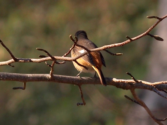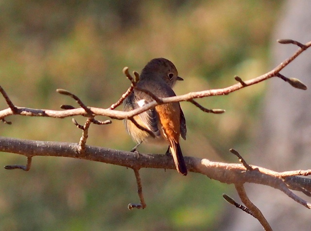 あけぼの山公園のレンタサイクルを貸し出す場所(もう営業していないけど)の前が日向になっていて気持ちが良かったので停まっていると、ジョウブタキ♀が出てきてくれました。ちょっと後ろ姿ですが、いい感じです。