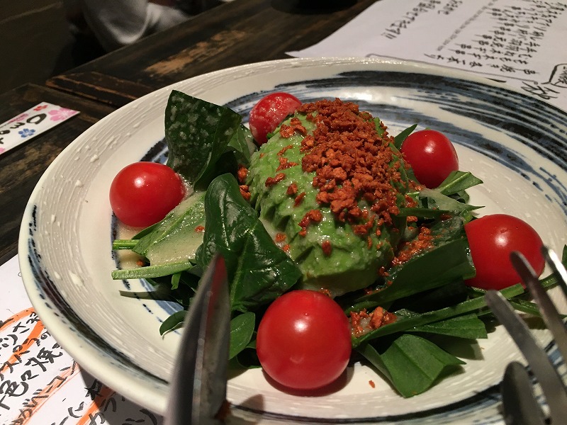 東葛人さんおススメの焼酎「鳥飼」はめちゃくちゃ美味しかったです。この焼酎はロックで飲むのが美味しい!焼き鳥と一緒にね。サラダはなんて言う名前か忘れたけど、変わってました(笑)