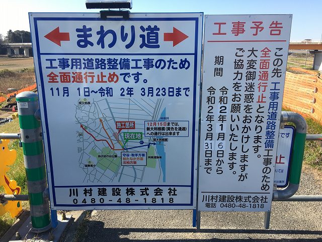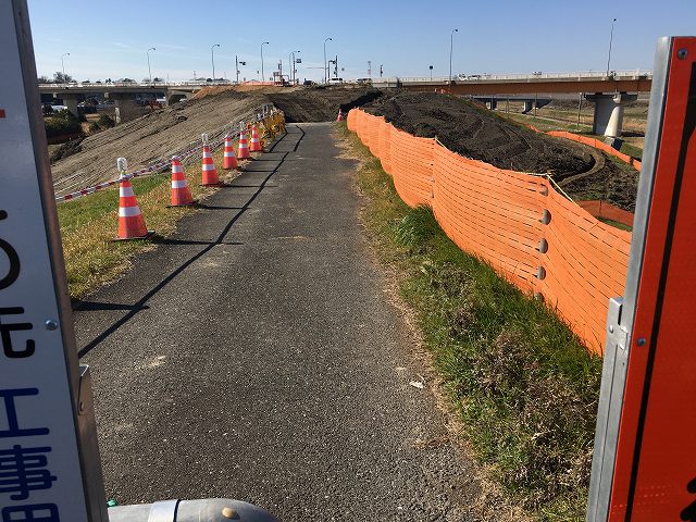 あとは追い風にのって江戸取の裏を抜けて帰宅することにしました。いつものように大利根橋にアプローチすると、、なんと通行止め、、、迂回した調節池の中の道も通行止め(アスファルトがはがれてし