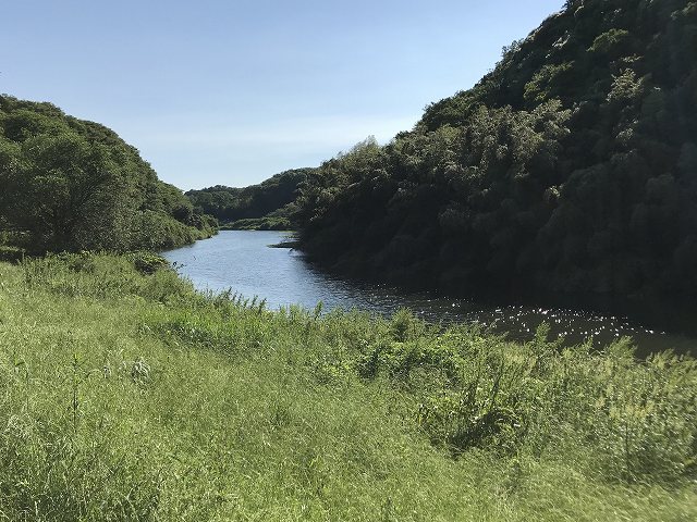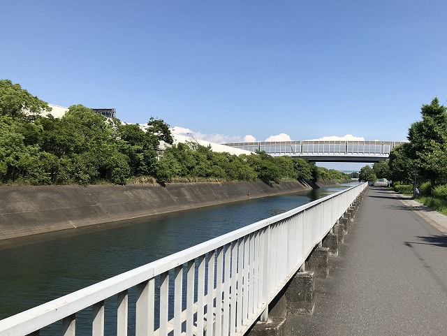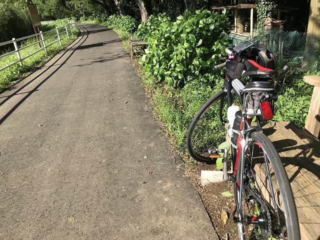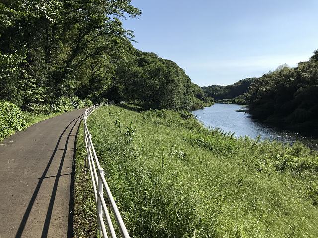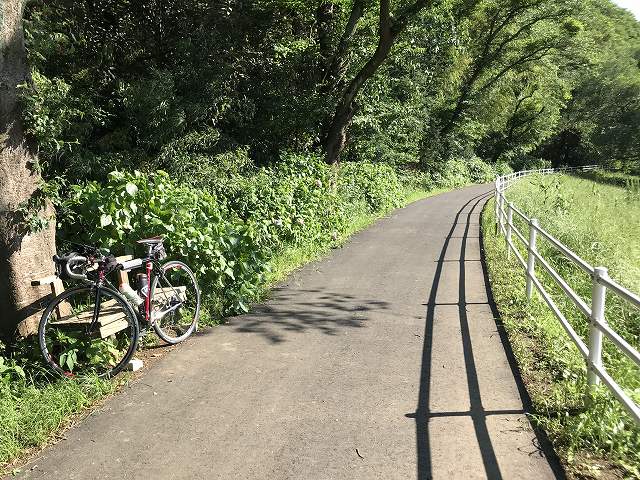 谷津干潟あたりから水路沿いにこんな道がずっと花見川手前の浜田川まで続いてるんですね。めちゃくちゃ快適な道でした。インド料理のシタールさんの手前くらいの場所で、花見川CRに合流するので、かなりいい感じです。