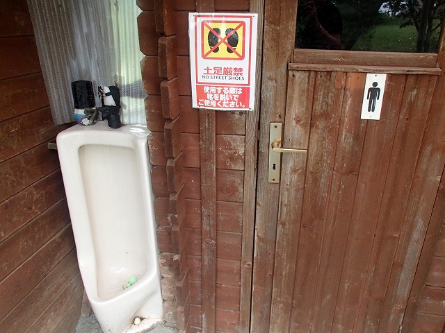 トイレが土足厳禁なのがいいですね。入ってるのがすぐわかるので、かなり離れたところで待てます。さすがに中は撮影できませんが、結構明るい電気を自分でつけたり消したりするタイプです。中は真っ白のフカフカトイレマットにスリッパが置いてあります。小便器も外にあって電気ついているので外から丸見え(笑) これ利用者が自然ときれいに使ってくれる工夫ですよね。