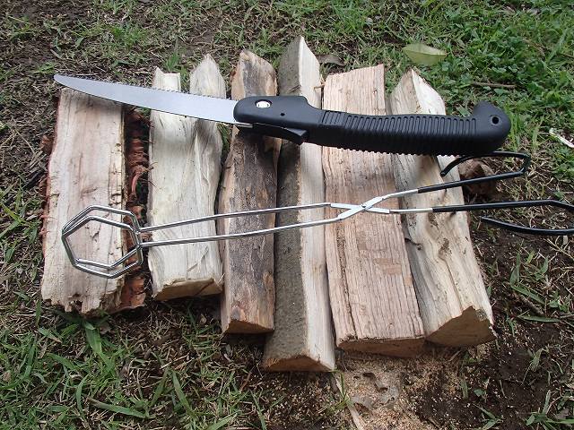 あ!この火ばさみもセリアです。まっすぐだと使いづらいので曲げてありますが、僕の焚火台にくべる薪は小さくしているので、この火ばさみで全然問題なかったです。折りたためたらいいんですけどね〜。