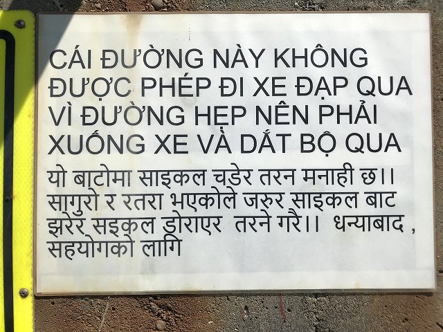 この看板を見つけたのでおとなしく押し歩きしてたんですけど、みんなガンガン自転車乗って通ります。よく聞いていると日本語じゃない言葉で話してました。このマークじゃ理解できないのかな??