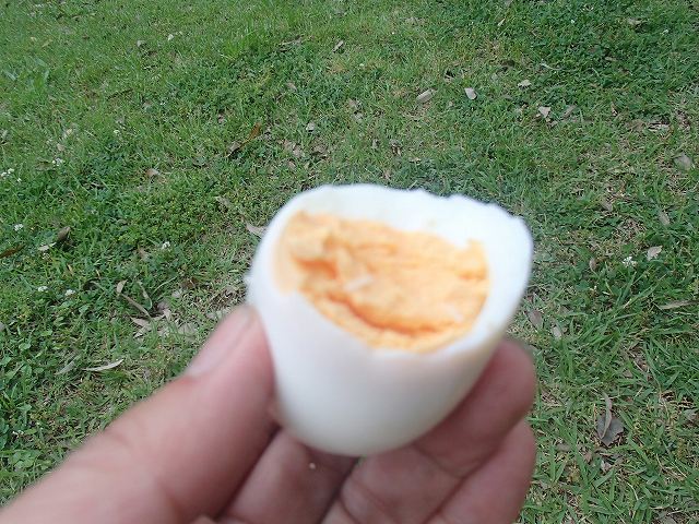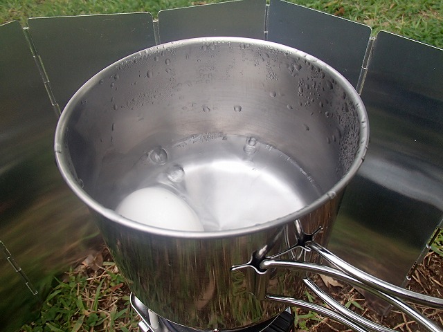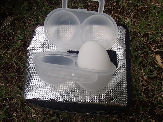 次の朝はコーヒーのために沸かしたお湯の残りでゆで卵を作ります。(これは普段の朝にはやりませんね)パンとウインナーを昨晩食べちゃったので、、ドーナツと一緒に(笑)あ!1個売りのキウイ買って来ればよかった!