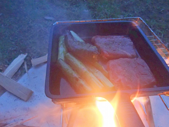ジックリと焚火を楽しむソロキャンプとしては十分です。が、、やっぱり、もうちょっと挑戦したいですね。次回は、もうちょっと高い霜降り肉を買いましょう!!焼き鳥買ってくるかな〜