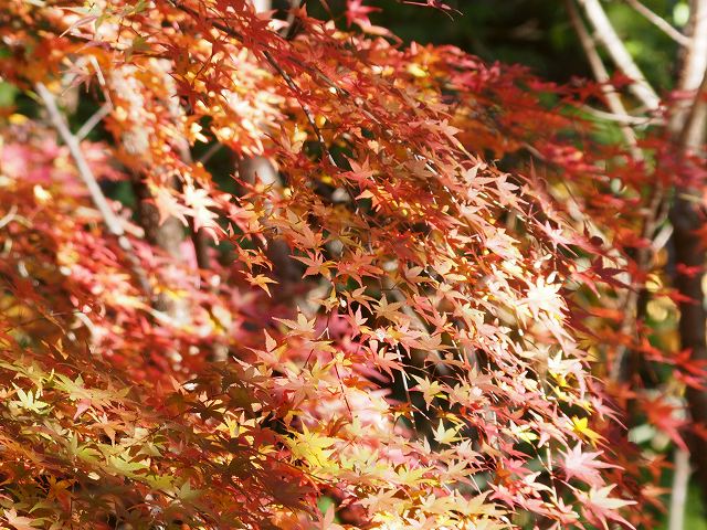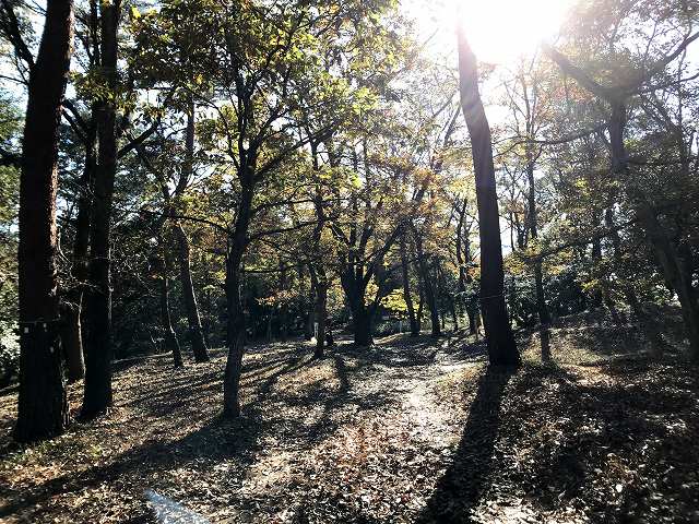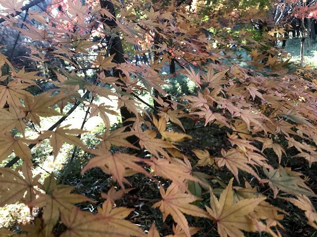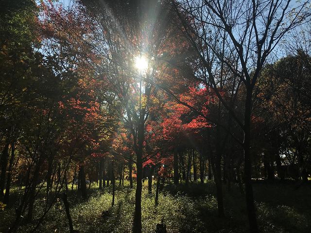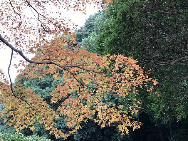 自然の森なのか?人口の森なのか??よくわからないけど、紅葉がちょろちょろある感じなので自然の森っぽいですね。このいろんな色の紅葉が混ざっている感じが自然でいい感じです。