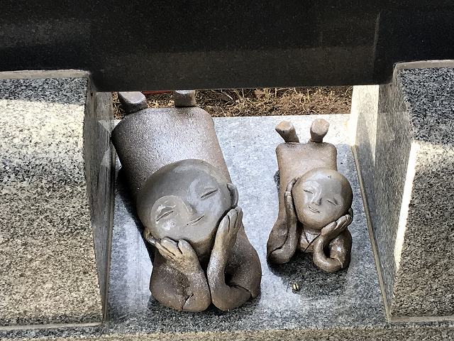 到着する前には、延命寺のカエルに挨拶しようと覗き込んだら、、え?なんかニコニコしたお地蔵さんが見上げてます。カエルはどっかに移動したのかな?