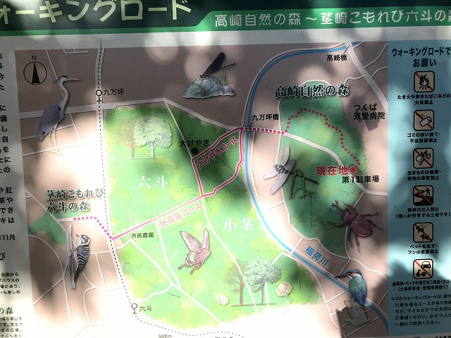 「高崎自然の森」は「茎崎こもれび六斗の森」の隣なんですね。という事でウォーキングロードをたどって、森を一周歩いたら一万歩も歩いてました。「茎崎こもれび六斗の森」はキャンプ場で一杯家族連れがテント設営中でした。