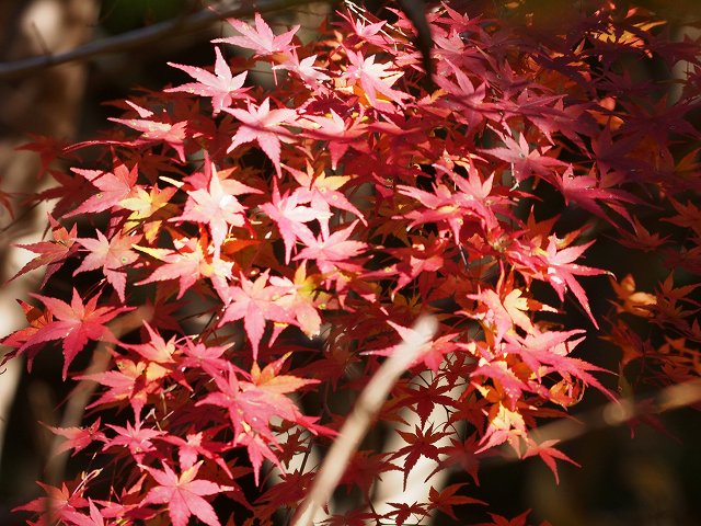 駐車場が高圧線の鉄塔の下なので、鉄塔を目印にして森を歩き回ったてたら結構面白かったです。けど、風があるので野鳥の写真は全く取れず、、紅葉だけは撮れました。