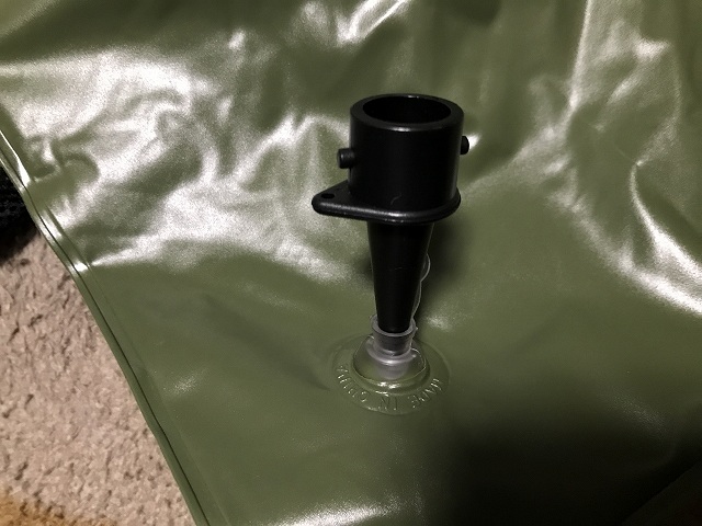 エアピローのエアを入れる部分はビーチボールと同じ構造だったので、カヤックの空気入れに付属していたアダプタが使えたので、簡単にエアーを入れたり抜いたりできますね。