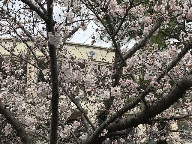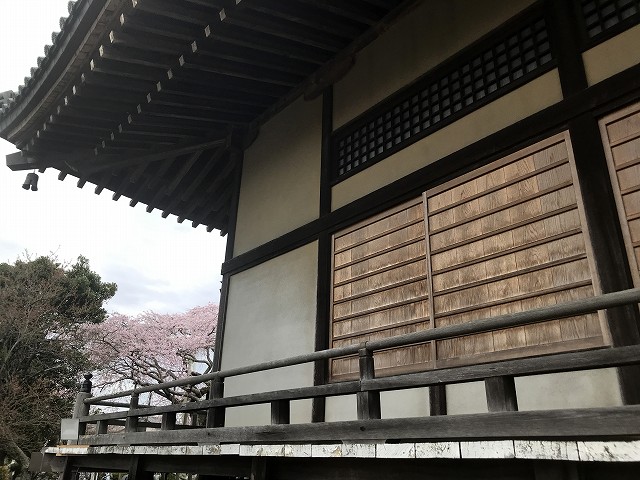 五分咲きなのですが、離れると満開に見えますね。今回は境内を歩いている時には「あれ?咲いてない?」と不安になりましたが、ヒトも桜も5分咲きでしたので、じっと待っていると人が写らないタイミングで撮る事もできます。あと数日で満開ですね〜(雨戸が開いているといい画が撮れるんですけどね〜)