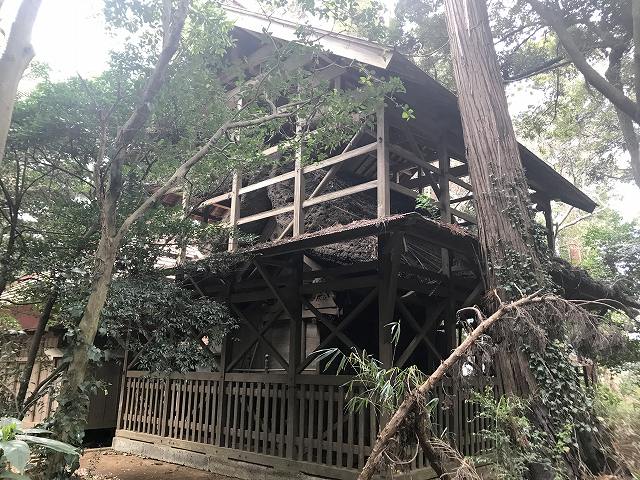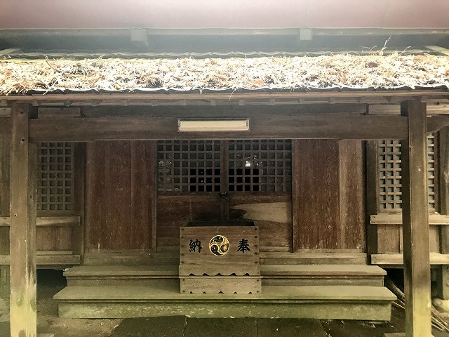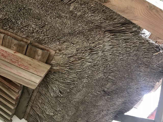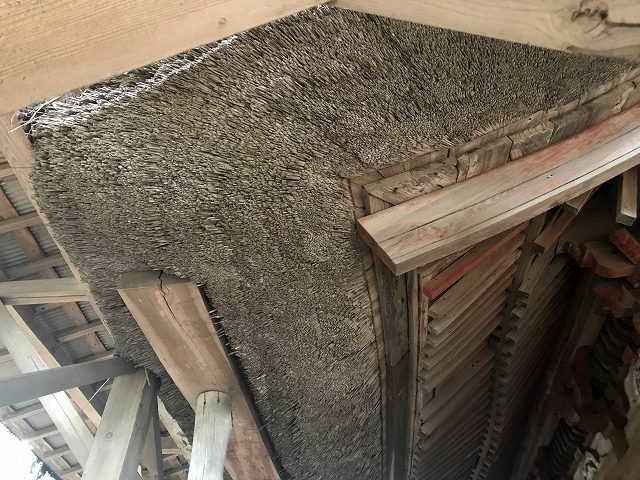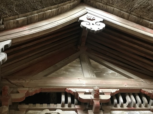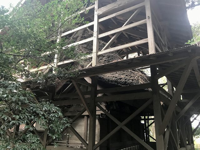 落ち葉は積もってないけど、もっとすごい茅葺に囲まれてました。かなり分厚い茅葺屋根ですね。もしかしたら拝殿の屋根の中も茅葺なのかもしれません。