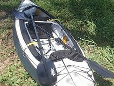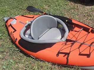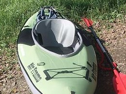 僕のカヤックはスポーツタイプなのでいろいろ工夫されて軽量化されてます。本体のエアーが入るエリアが1つだけ(パンクしたらカヤックは即沈みます)だったり、床がウレタンじゃなくてエアータイプだったり、チェアの座面ペッタンコだったり。座面がペッタンコなので、着座位置が床と同じ高さで、船内に水が入ると足だけじゃなくておしりも濡れちゃうんですよね〜。