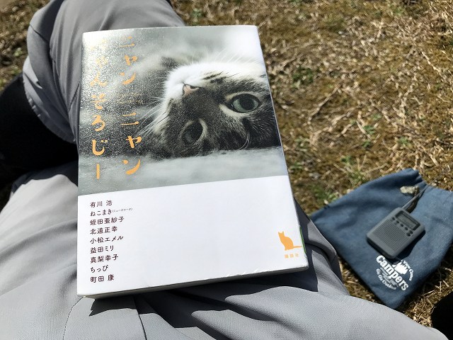 お店巡りしたあとは公園で読書(たまたま「ニャンニャンなんそろじー」というの本)。午前中とは打って変わって太陽が出てきてポカポカです。