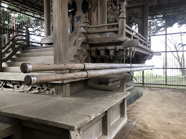 伊達政宗に関係してるんですね。本殿の彫刻も立派ですが、本殿の下に見慣れないものがありました。物干し材と同じ機構で伸縮するみたいですが、何でしょうね?本殿を担ぐのかと思ったけど太さと強度が足りなさそうなので、お神輿みたいに担ぐことはなさそうです。