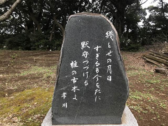 実は「愛宕神社」が気になって丘に登ってきたんですが、由緒ある場所なんですね。境内をうろうろしていると巨木がいっぱい!!ご神木もありました(この画像の木ではないです)し、横には気になる石碑もありました。