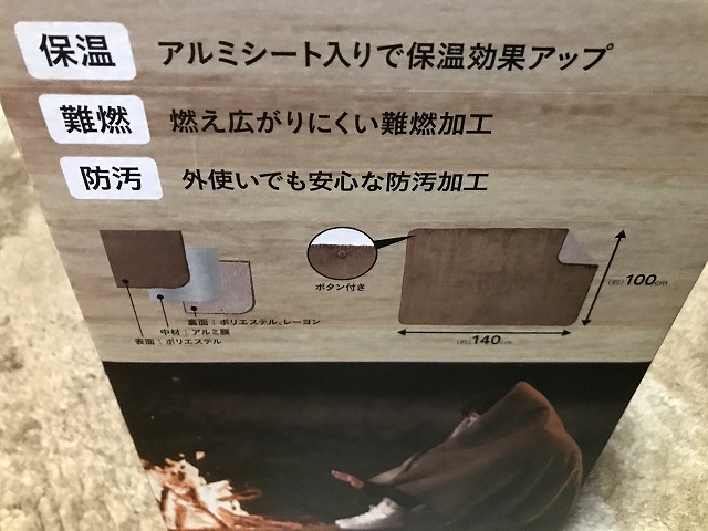 探し物ポタで探していたものは「あったかブランケット」でした。冬キャンプでブランケットを使いたいけど、ポリエステルのものは焚火の火で簡単に燃えてしまうので使えないんです。最近は難燃処理されたブランケットがあるので調べてみるとカインズの「あったかブランケット」が安く(1980円)ていいみたい。でも、冬の間は入荷されてなかったので買えませんでした。